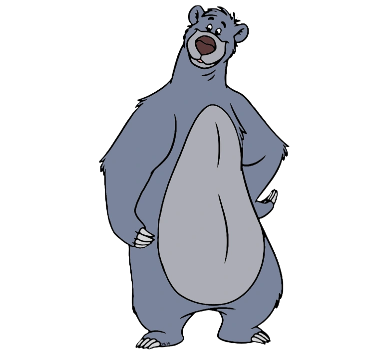 Baloo is a friendly, easy-going sloth bear who loves having fun, partying and living without responsibilities. He is Mowgli's friend and one of his mentors. He is warm-hearted and caring, he loves Mowgli despite him being a human child. Baloo is also very soft when he speaks, he prefers to relax and not bother with any problems around him. However, when the real danger arises, and Mowgli is threatened by Shere Khan, Baloo decides to accompany him to a human village along with Bagheera, even though he would not want to be separated with the child after having spent a lot of time with Mowgli and developing a bond with him. This decision also earns him Bagheera's respect (who previously didn't consider him to be a very useful member of the animal society).