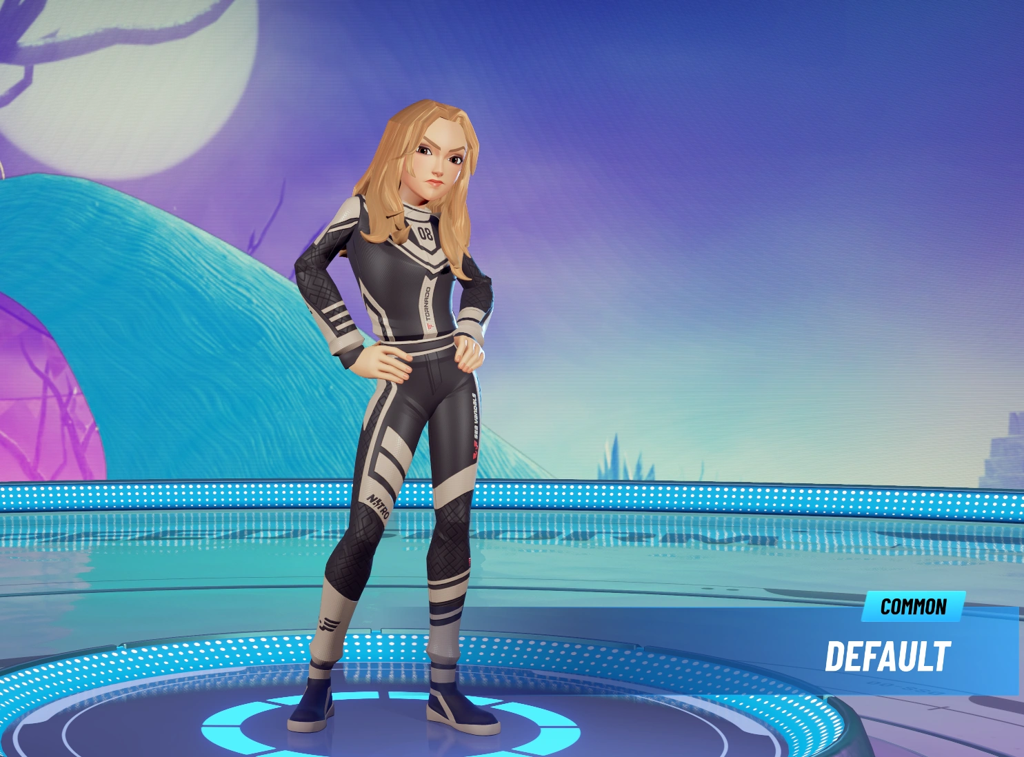 Elizabeth is a governor's daughter and a pirate king, a tall and slim young woman with brown eyes and blonde hair. In Disney Speedstorm, her gray racing suit is relatively simple and calls back to the color palette of some of her original Disney movie outfits. Her personality in the game was inspired by her movie prototype and slightly enhanced: she is fearless, confident about her victory, and even ruthless when it comes to her Unique ability that slaps opponents with a knot when they are in vicinity.