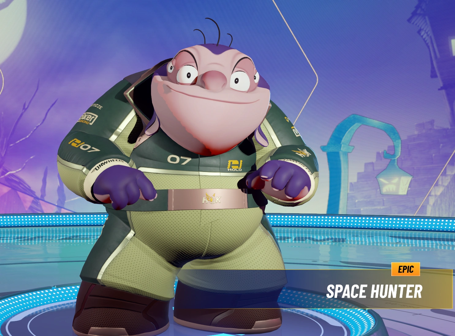 Jumba is an scientist who created Stitch, Angel and other experiments. In Disney Speedstorm, Jumba's racing suit is mostly original but calls back to a mix of colors of his outfits from the original Disney films and series. His demeanor on the Racer select screen is based on his curious and impatient personality from the original, he can be seen smiling with the fire of excitement in his eyes, and he can also express tiredness and frustration due to someone doing something that he finds unclever. His Unique ability gives him a powerful alien weapon that targets the first player or can be dropped as a bomb behind Jumba.