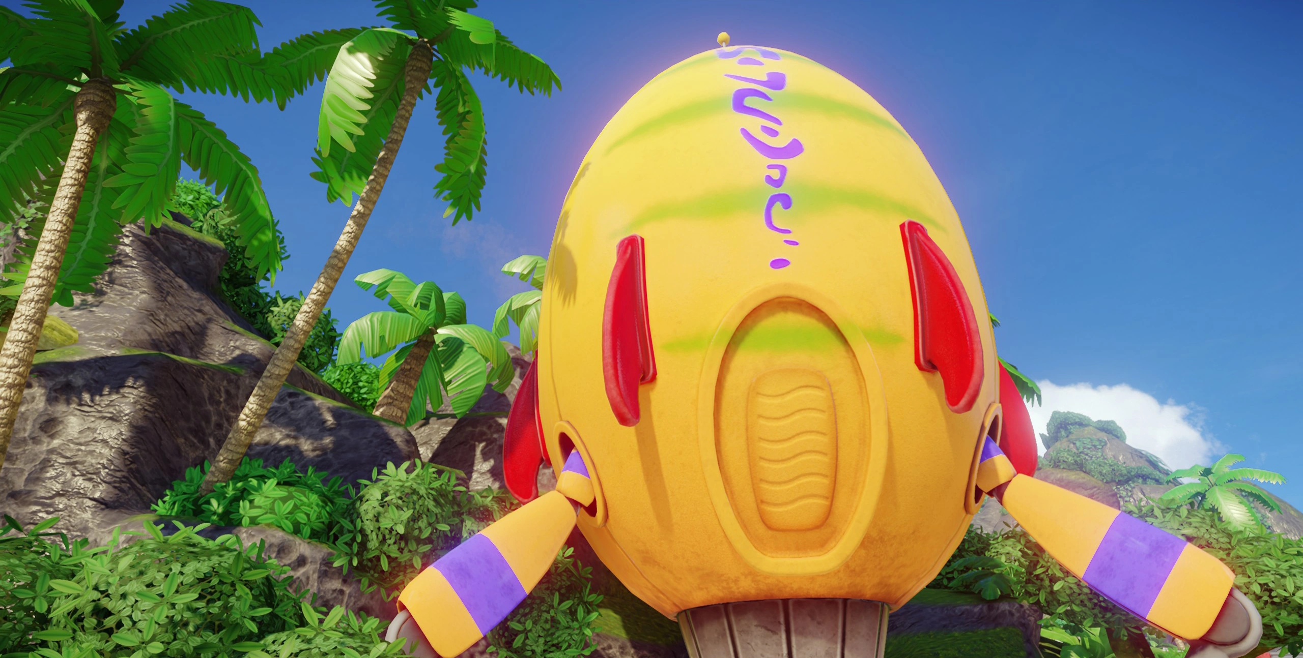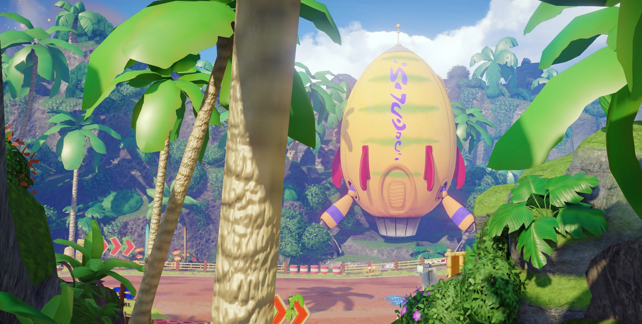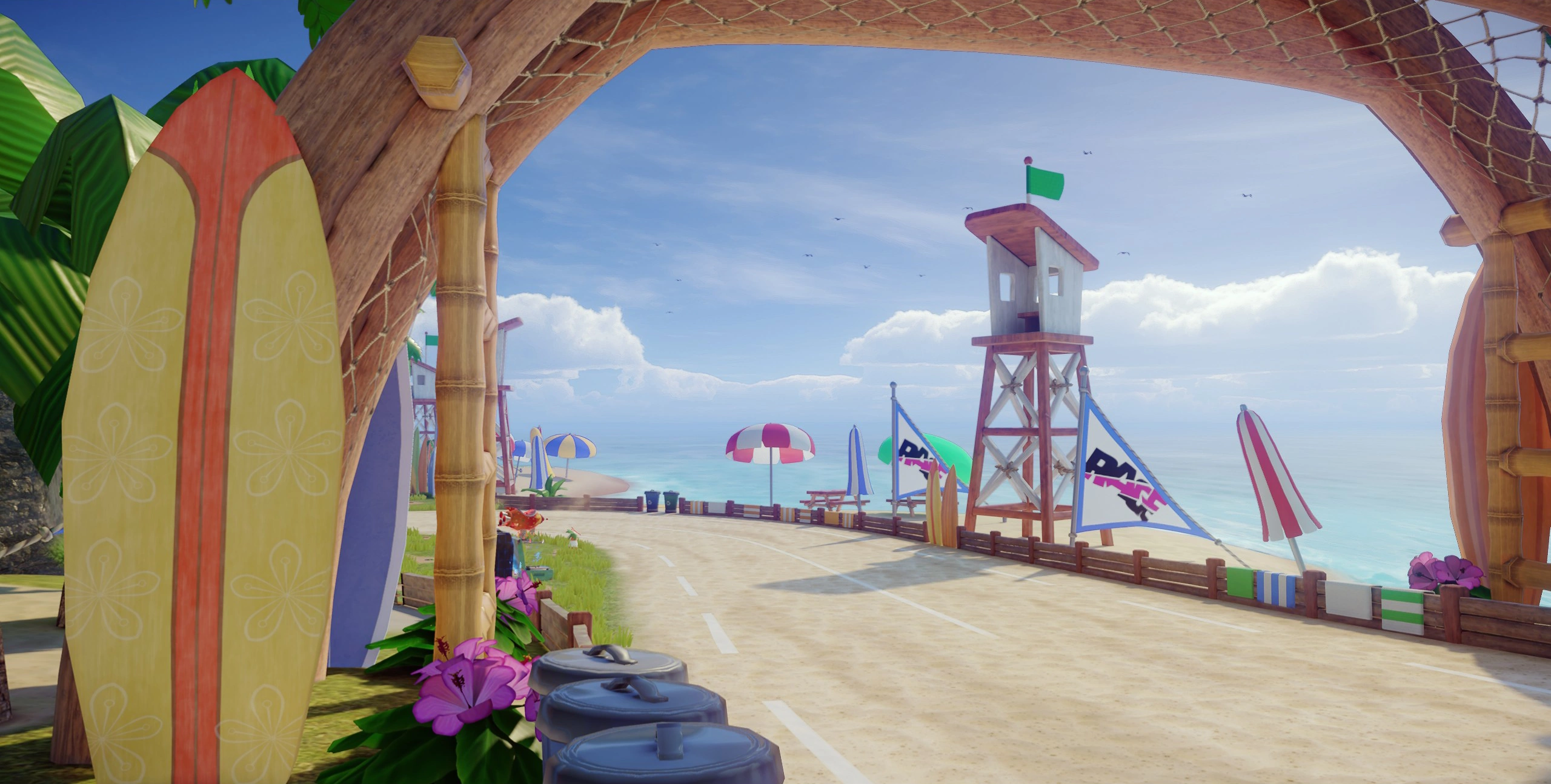 The map features recognizable thematical surroundings and gives a feeling of driving along the coast of Hawaiian islands, sometimes drifting too far in the jungle where players can even find a volcano and drive over lava. Different parts of the map represent different objects in the cartoon's style such as: